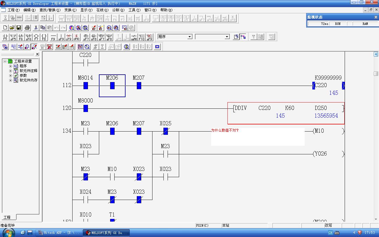 多謝各位兄臺!問題已解決!原來寄存器D251已被使用所引起!