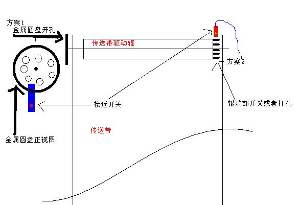引用引用第2樓guochunyi于2009-04-05 07:30發(fā)表的 :很簡單的問題,用傳送帶就有轉(zhuǎn)動(dòng)輥吧,再轉(zhuǎn)動(dòng)輥的端部打幾個(gè)合適的空洞,然后另外的支架上放一個(gè)接近開關(guān)就可以了。 [attachment=21472]
