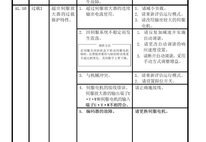 具體內(nèi)容是故障AL.50 (過載1)       AL.51(過載2)本人附上圖片兩張你看一下。具體內(nèi)容還是要查閱說明書。