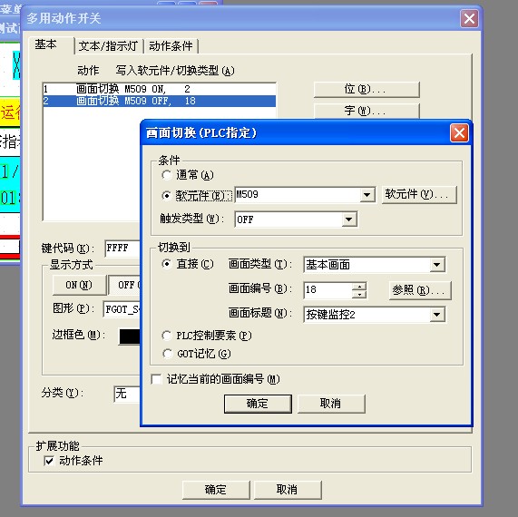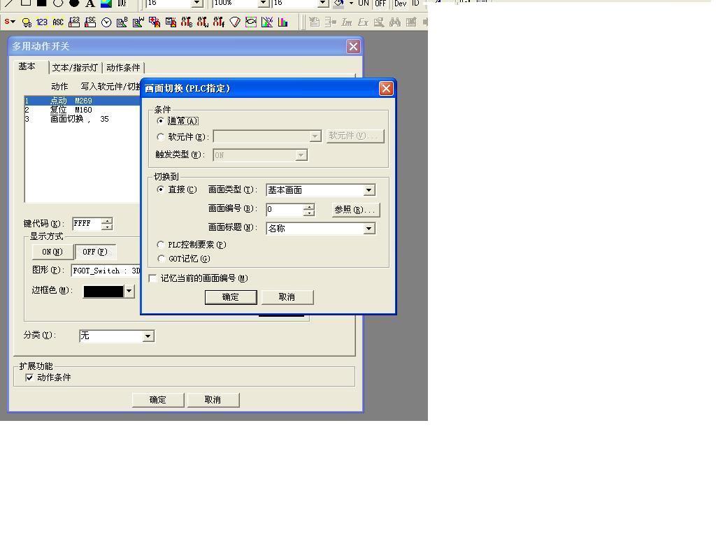這是一個多動作開關的設置畫面,那個標題 "畫面切換(PLC)指定",是怎么設置然后才有的.