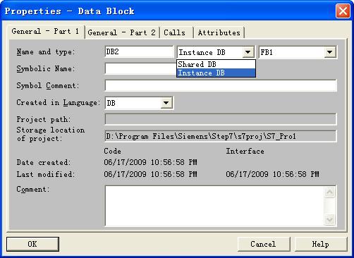 創(chuàng)建數(shù)據(jù)塊時(shí)選擇“instance DB”,再選擇“FB1”,即生成了其背景數(shù)據(jù)塊。