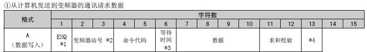 各位大俠,下面是一個(gè)三菱變頻器的通訊協(xié)議格式,(在附件中),我的疑問是其中的命令代碼是什么東西,應(yīng)該怎么寫,還有我有一段程序它把命令代碼那幾個(gè)是這樣設(shè)置的: