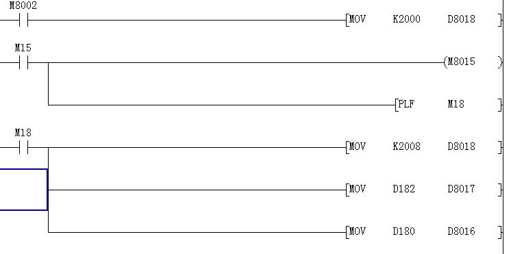 我感覺你這里的傳送指令MOV應(yīng)該為MOVP的.你這里的M18只是在一個掃描周期里接通