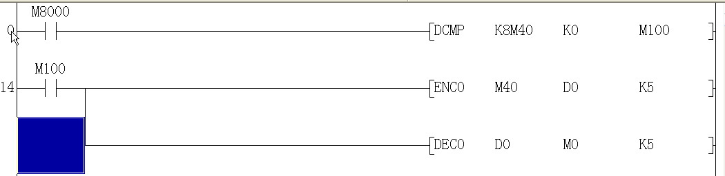 在觸摸屏上的任務(wù)就是做30個(gè)按鈕,分別往D0里寫從0-29這三十個(gè)數(shù)字。PLC里根據(jù)上面的指令會(huì)自動(dòng)解析出接通哪個(gè)位。已經(jīng)在公司FX2N和1N的仿真程序中成功實(shí)現(xiàn)。