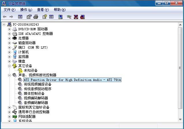 在我的電腦中右鍵屬性進(jìn)入設(shè)備管理器,查看聲音及視頻項(xiàng)再掃描新設(shè)備,顯示AC~97項(xiàng)或是其他軟件(未安裝成功會(huì)顯示問號(hào)),再插入聲音驅(qū)動(dòng)安裝盤。點(diǎn)擊更新驅(qū)動(dòng),選擇安裝程序位置,點(diǎn)安裝即可!部分如圖所示。。