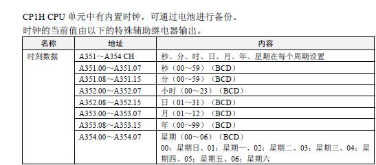 請教歐姆龍CP1H的PLC有沒有和三菱PLC一樣的年、月、日,時、分、秒數(shù)據(jù)寄存器?比如三菱PLC有D818 、D817  、D816  、D815  、D814  、D813,發(fā)別為年、月、日、時、分]秒。謝謝各位指點下。