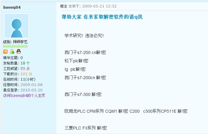quote]引用樓主baeeq84于2009-05-21 12:32發(fā)表的 幫助大家 有來索取解密軟件的請q我 :
