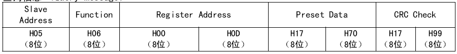 算法為:將初始數(shù)據(jù)設置為FFFF,然后,將第一個數(shù)據(jù)H05與初始數(shù)據(jù)做異或,結果保存在CRC寄存器中。