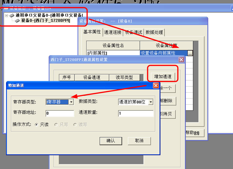 點(diǎn)擊“西門子_S7200PPI”---編輯西門子_S7200PPI屬性 ;添加通道,和關(guān)聯(lián)變量等。