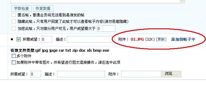 5.將“附件”--“添加到帖子中”按照自己需要進行編輯,插入帖子內(nèi)容;