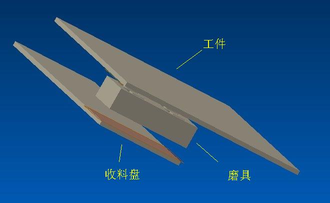這是個(gè)關(guān)于沖型機(jī)的動(dòng)作說明,上面的為工件,中間位磨具的下模,下面的板為收料盤。