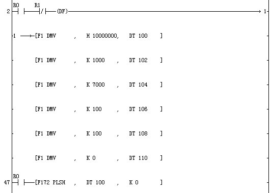 DT100是存儲你的脈沖輸出指令的功能代碼存儲器 K0是指你的脈沖輸出指令對應(yīng)的通道;K0就是0通道(Y0 Y1)
