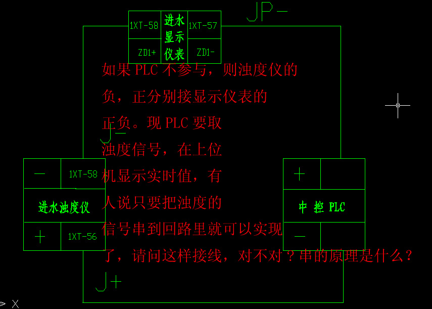 前期也是為其所擾。 還是提供儀表、濁度儀、PLC的稍微詳細點的資料。 如果膽量足夠的話,可以串上電阻按照該線路接上試試。 |