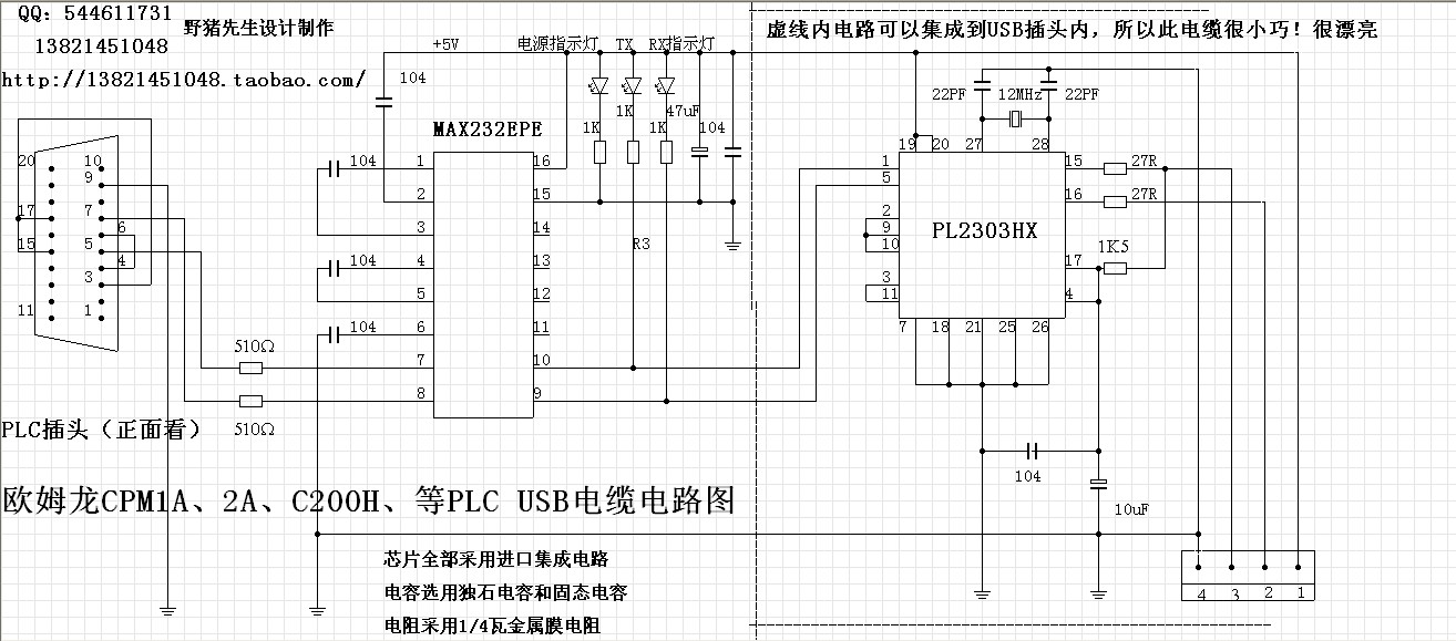 歐姆龍CPM1A、2A、CQM1H、C200HA   USB編程電纜電路圖