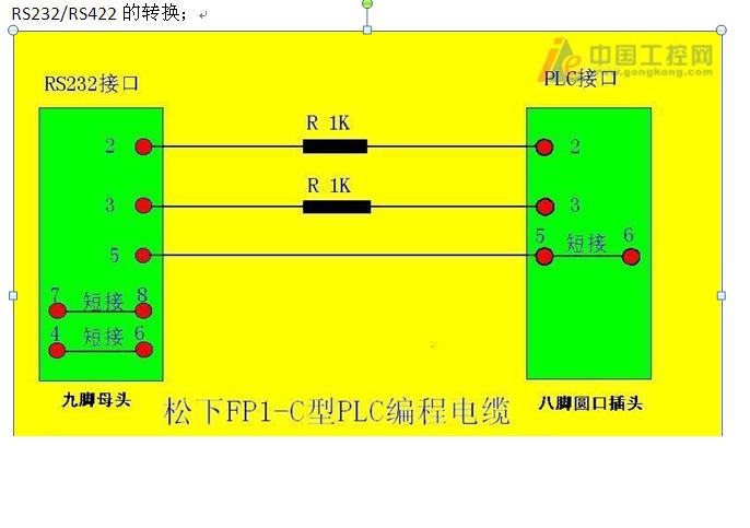 以下是從網(wǎng)上找到的松下FP1—C24的下載通訊線纜,它也可以應(yīng)用到三菱FX2N PLC(RS422),只是將三菱PLC的第4、1腳分別接PC上通訊口的2、3腳,三菱PLC的2、7腳短接與PC上通訊口的第5腳連接,PC上通訊口的4、6腳短接,7、8腳也短接。已經(jīng)試過(guò)可以使用。