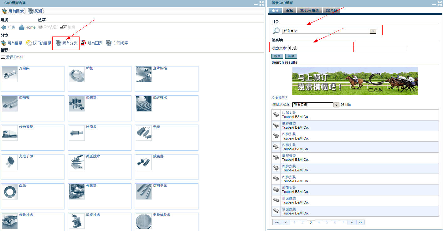你可以點(diǎn)擊所有分類進(jìn)行查找,也可以在網(wǎng)站右側(cè)的搜索文本框中輸入零件的名稱進(jìn)行模型查找。