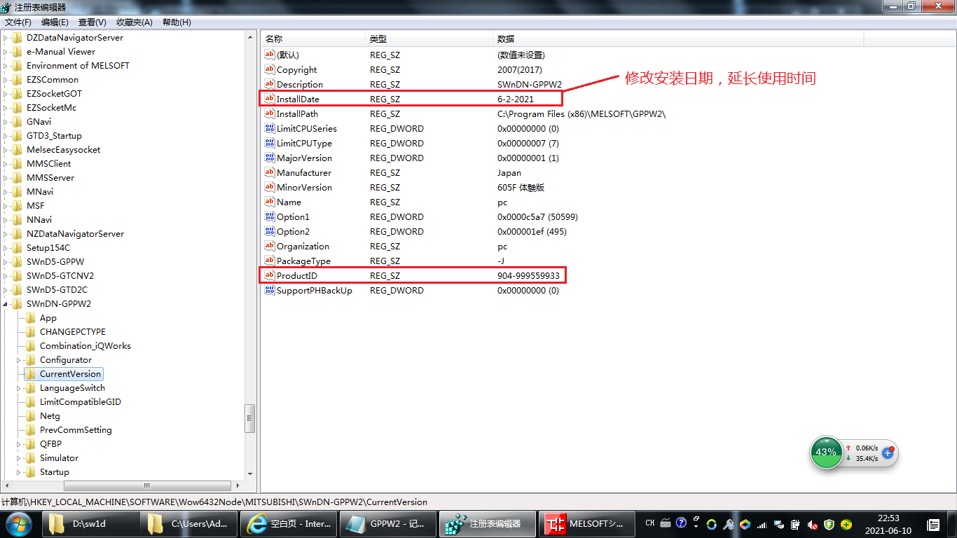 前段時(shí)間碰到一個(gè)項(xiàng)目,需要日本工程師遠(yuǎn)程調(diào)試,使用到了日文版本的gx works2,找不到好的資源,所以到官網(wǎng)下載,30天的安裝限制,用比較麻煩的方法,到注冊表里,找到安裝日期,可以自由修改,30天試用日期結(jié)束了,可以修改日期到最新的日期,又可以使用30天,雖然不能徹底解決,臨時(shí)用用沒有問題,可以簡單延長。