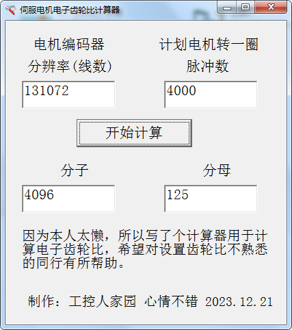 伺服電機(jī)電子齒輪比計(jì)算器,希望大家用得上。