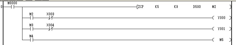 哪位好心的大俠指導(dǎo)下,我這個區(qū)間比較指令為什么會沒有輸出?D593是模擬輸入量數(shù)據(jù)寄存器,10ADC,模擬輸入量用的是直流0-5v的電壓,對應(yīng)于0--1023。我現(xiàn)在假設(shè)當(dāng)<0.3v時線圈y0有輸出,0.3v--0.5v時y1有輸出,>0.5v時m5輸出。
