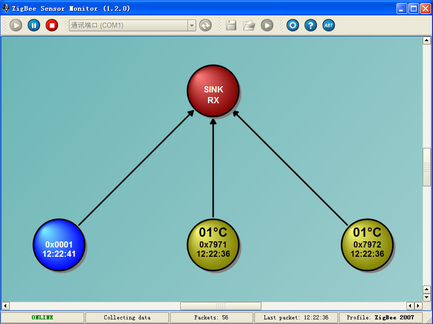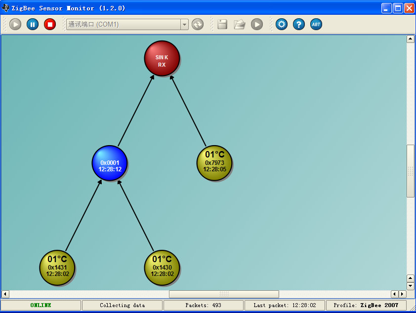 利用TI提供的Sensor Monitor軟件,可以很方便的看到整個ZigBee網絡的結構,這個軟件可以從TI的網站下載,
