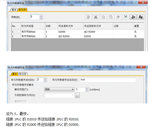 3.本例利用三菱人機(jī)數(shù)據(jù)傳送功能達(dá)到兩PLC,信號(hào)互換。