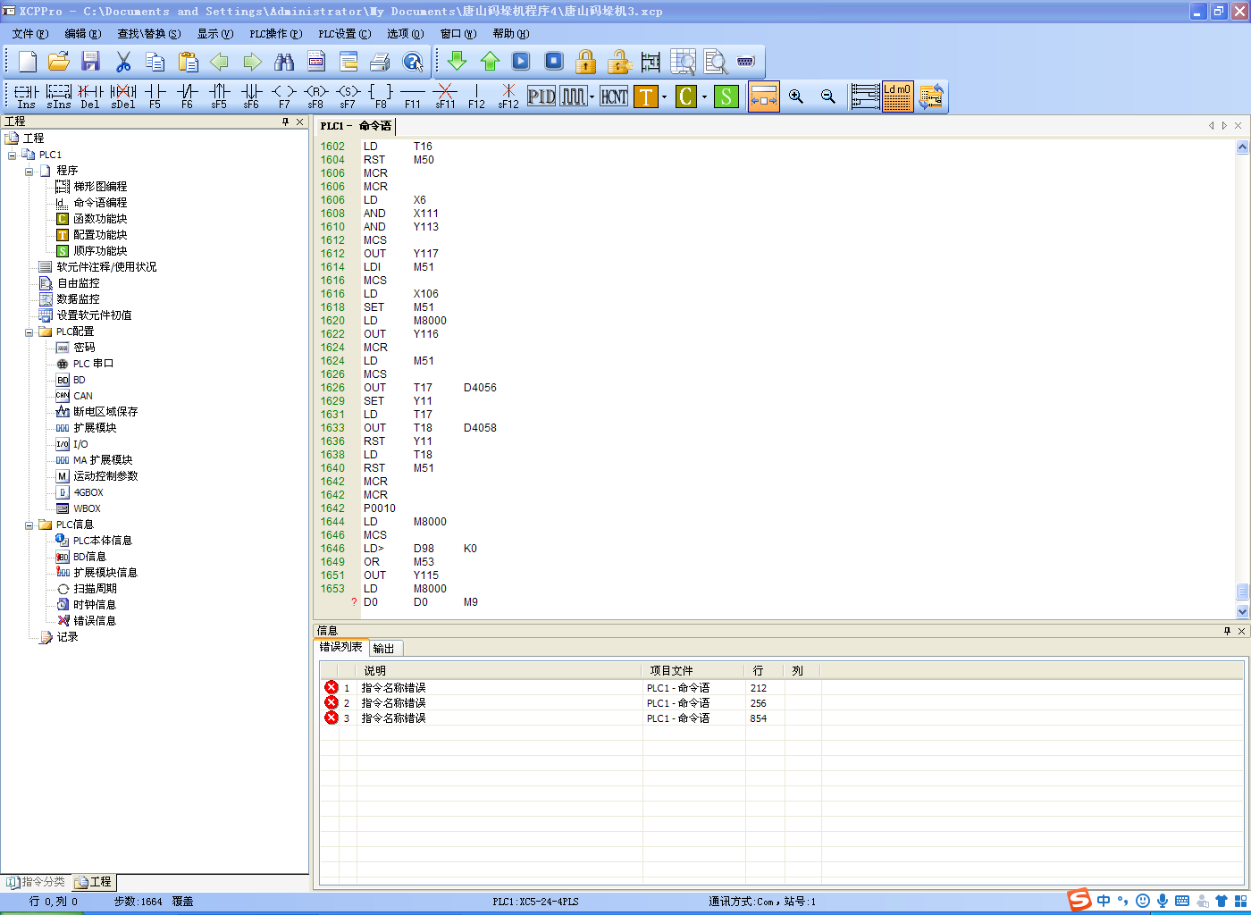 各位老師好!看這個(gè)圖,程序是一個(gè)框架碼垛機(jī)的,上載上來(lái)后有?D0 D0 M9這段語(yǔ)句,提示指令名稱(chēng)錯(cuò)誤。是咋回事哩?望哪位老師解答一下。
