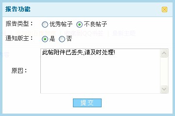 建議大家在程序樣例區(qū)看到無附件或附件已丟失的帖子能舉報一下。通知管理及時處理,謝謝!