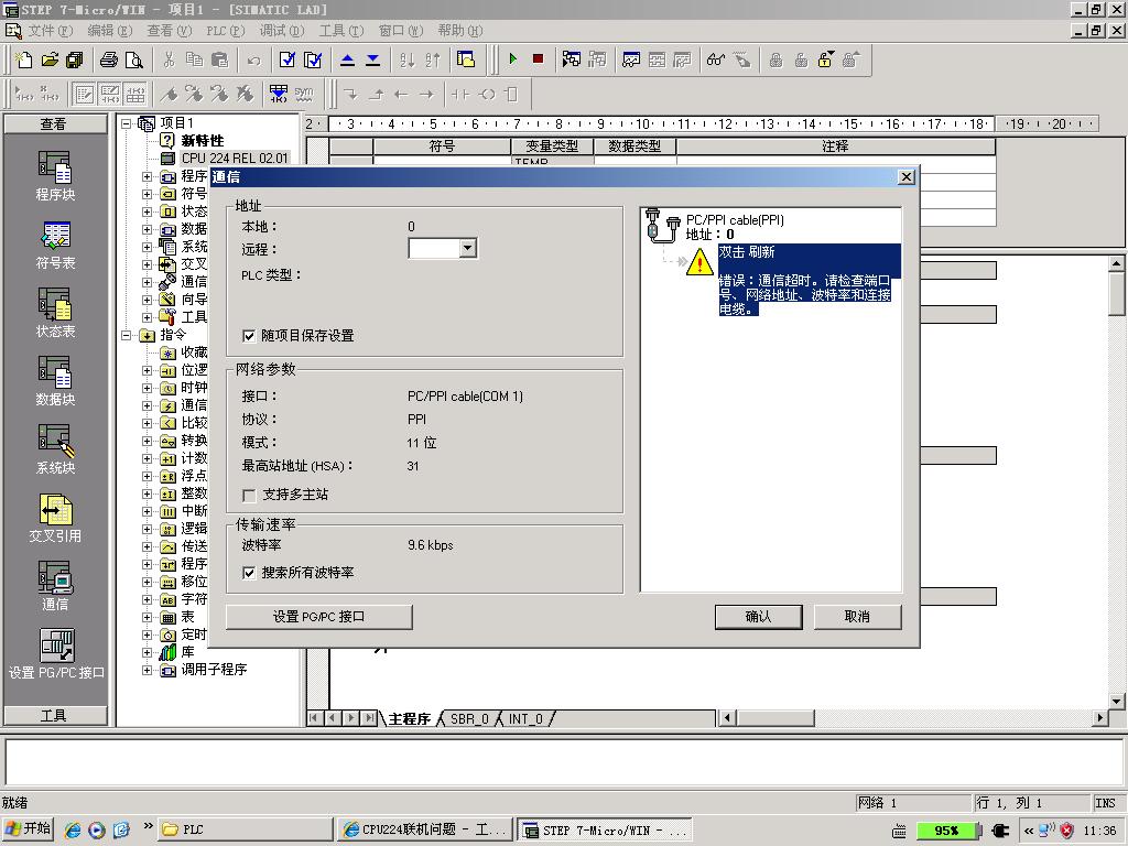 求教,CPU224  6ES7 214-1AD23-0XB0 Made in Germany,和我的電腦聯(lián)機時找不到地址,使用的是原裝PPI電纜6ES7 901-3CB30-0XA0 ,通信選項選的是全波特率,和另一臺CPU224 CN通訊正常。疑問通訊時為什么只搜索9.6和19.2兩個波段,機器上使用的也是原裝PPI電纜和電腦通訊,為什么我拿電腦去就連不上?