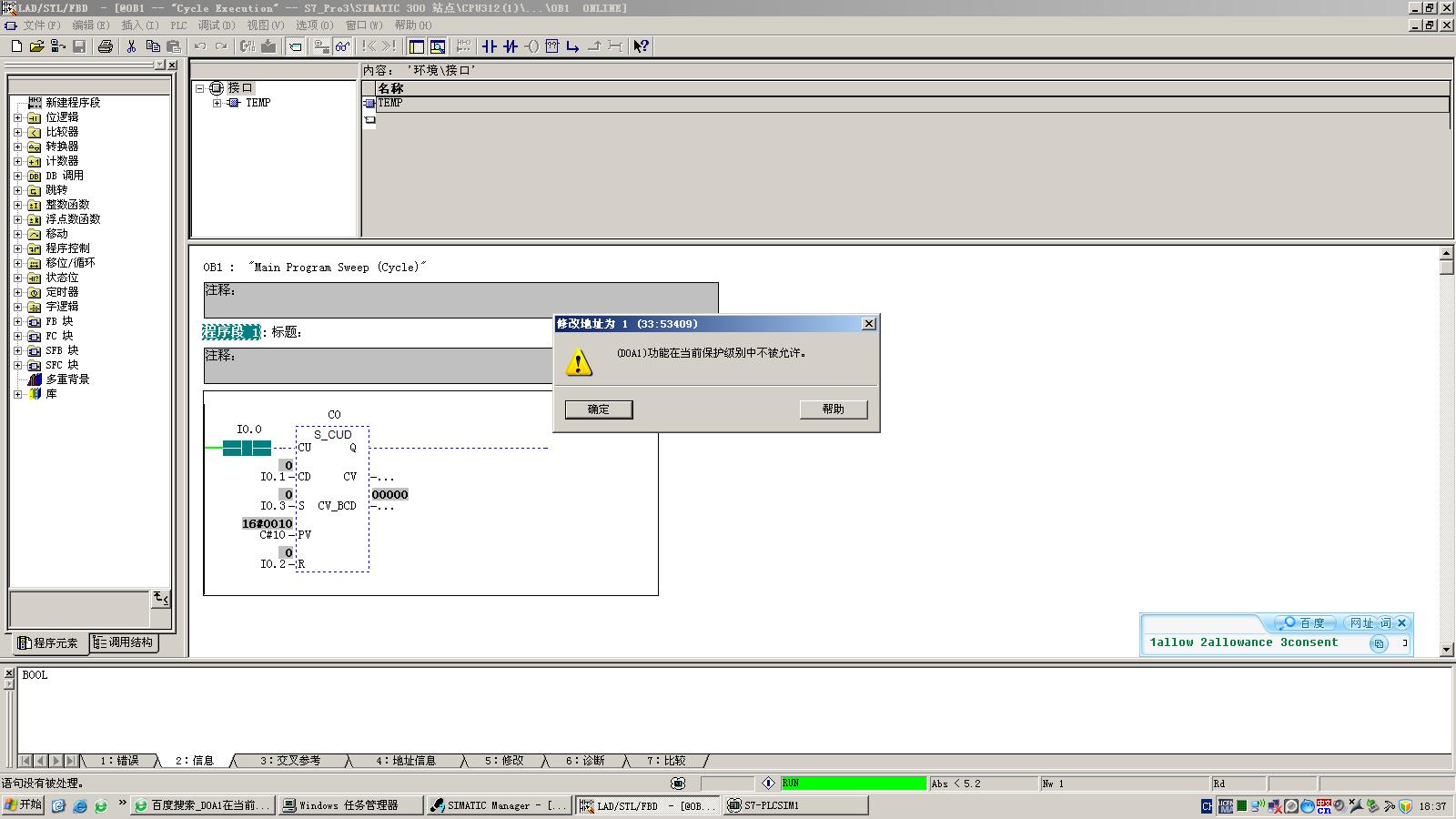 如下圖點(diǎn)擊   I0.0    強(qiáng)制為1時(shí)顯示當(dāng)前保護(hù)級(jí)別不被允許。請(qǐng)問(wèn)如何解決此問(wèn)題。謝謝