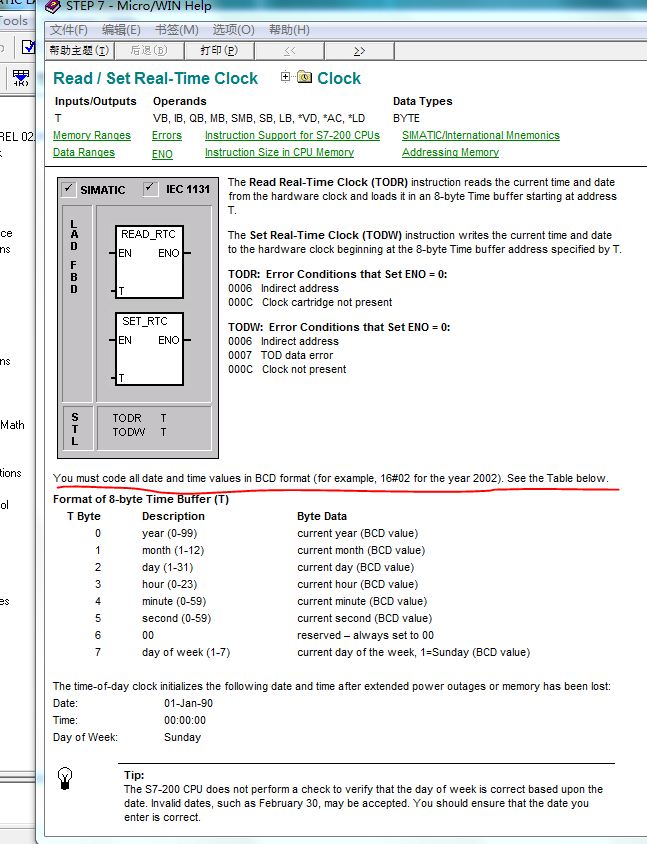 今天學(xué)習(xí)讀寫時鐘指令,看到幫助里一個內(nèi)容困惑不解,請各位大俠幫忙解釋一下,謝謝