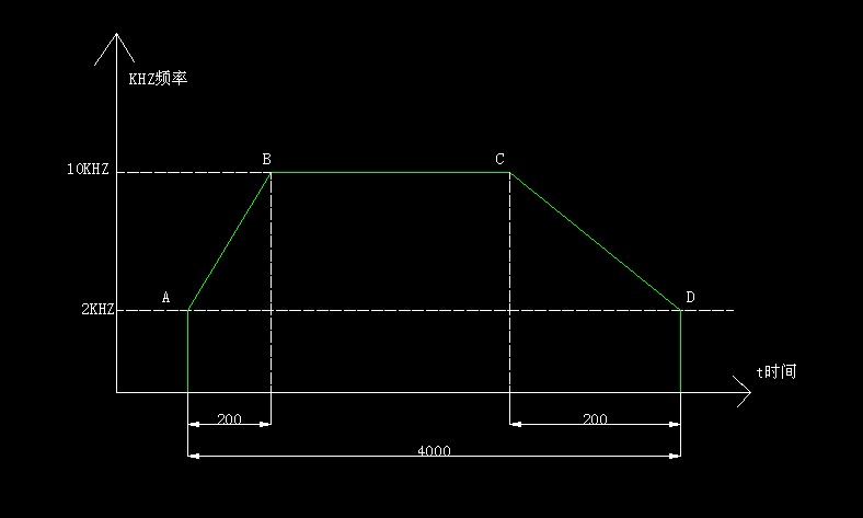 書(shū)上一個(gè)案例,有個(gè)地方看不明白,大家看一下。圖中是一個(gè)從2KHZ加速到10KHZ,加速的脈沖數(shù)是200個(gè)。然后恒速3600個(gè)脈沖,速度是10KHZ。再?gòu)?0KHZ減速200個(gè)脈沖到2KHZ的頻率后停止了?偯}沖數(shù)是4000個(gè)脈沖。