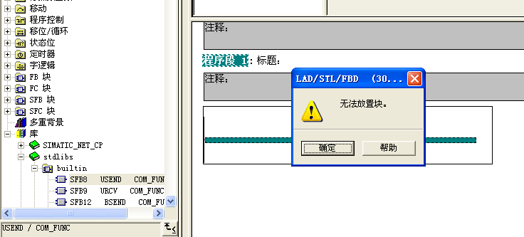 我在OB1里面調(diào)用庫里面的“stdlibs”里面的"builtin"里面的SFB或者SFC功能塊怎么都會(huì)顯示如載圖上的情況:“無法放置塊”,請(qǐng)各位高手給予我指點(diǎn)一下。