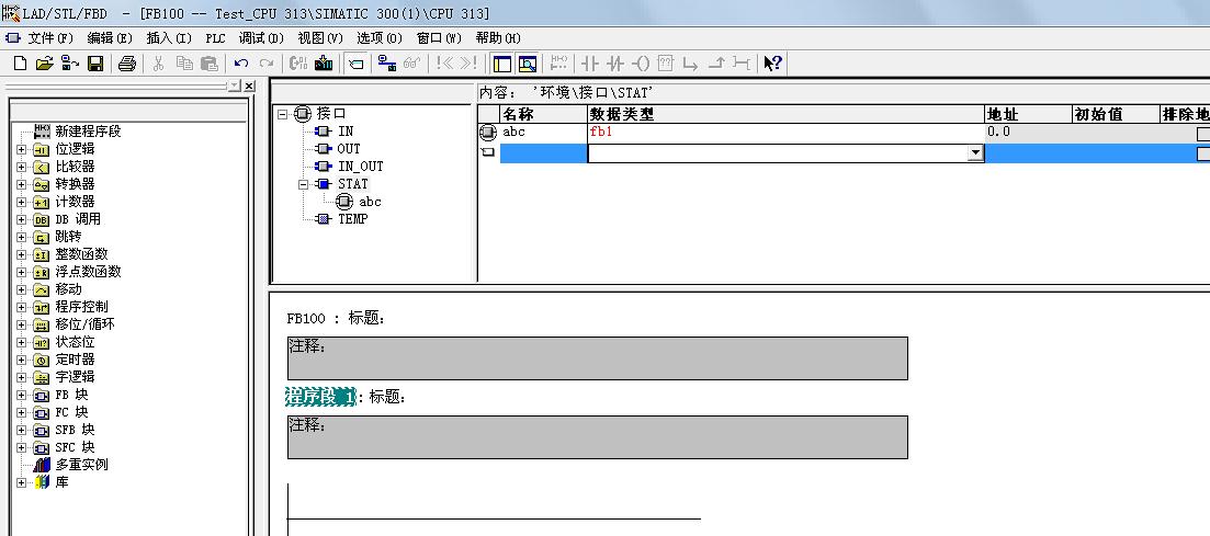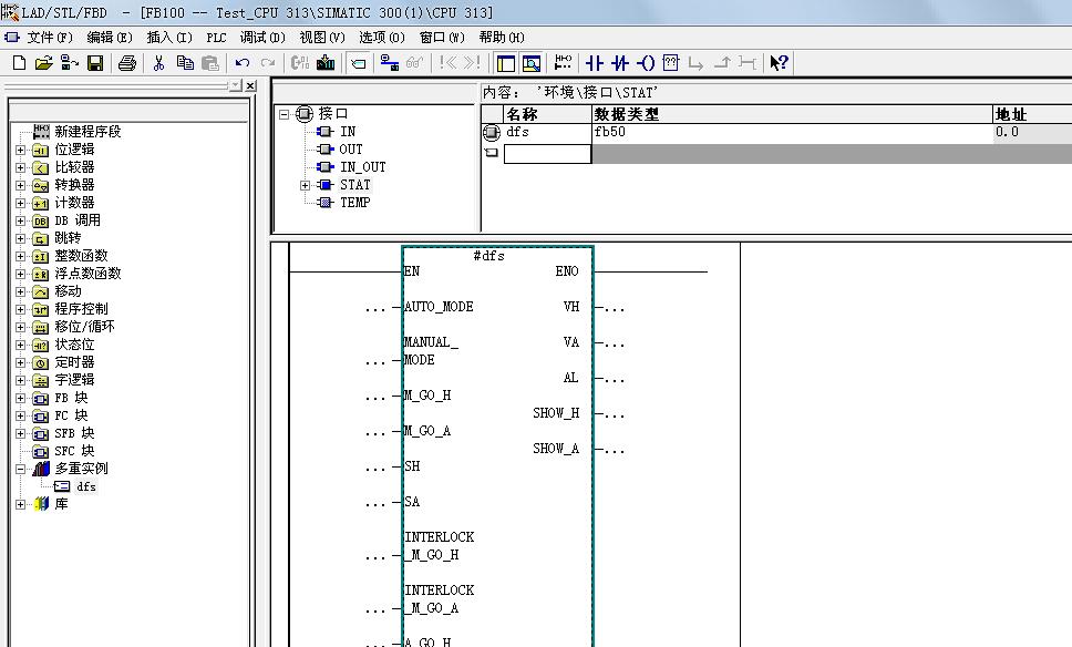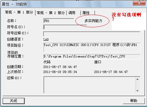 引用引用第1樓cvlsam于2011-06-18 15:52發(fā)表的 :確保你的調(diào)用FB與被調(diào)用FB都具有多重背景屬性。 [attachment=63907] 另外,在STAT下建立變量前,請確保你的FB1已經(jīng)存在并編輯完成。.......