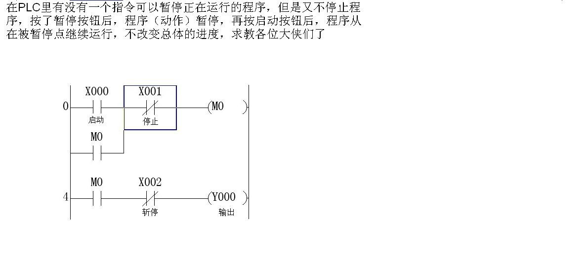 如果你只是想在某一步可以暫停,可以在那一步的邏輯中加入外部按鈕的連鎖,按下后運(yùn)行到這一步就暫停,松開按鈕后就繼續(xù)執(zhí)行。前提就是整個程序是相互鏈接的,沒有并行動作。
