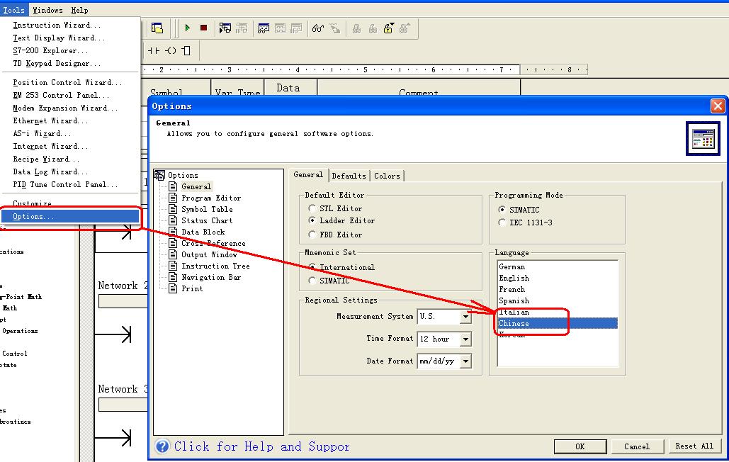 安裝V4.0 STEP 7 MicroWIN SP4后,發(fā)現(xiàn)顯示的是英文,哪位高手知道如何改成中文的,謝謝啦!