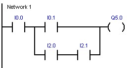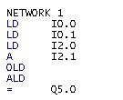 ,求高手指點(diǎn),圖中的  LD  I0.1和LD  I2.0   A  I2.1進(jìn)行邏輯或運(yùn)算,然后再串聯(lián)后面的線(xiàn)圈輸出,但是前面的LD  I0.0和并聯(lián)部分再進(jìn)行串聯(lián)卻未能在語(yǔ)句表中體現(xiàn),請(qǐng)問(wèn)這究竟是怎么一回事?