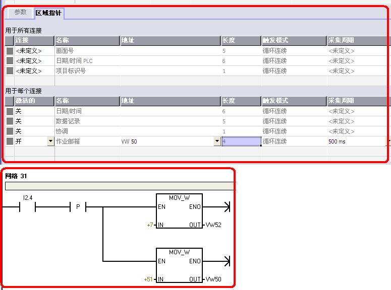 winccflexible中【通訊】--【連接】內(nèi)設(shè)置區(qū)域指針,畫面號和作業(yè)郵箱。