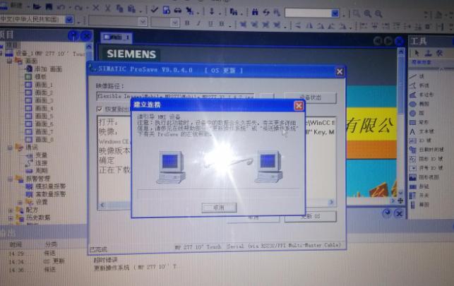我公司的西門子觸摸屏,開機白屏,師傅們看看怎么解決?謝謝!用prosave回復(fù)出廠設(shè)置,PPI電纜TX和RX燈都閃爍,但是連接不上。
