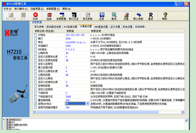 力控支持宏電模塊UDP和TCP兩種不同的通訊方式,參數(shù)設(shè)置時(shí)除了在“常見參數(shù)“中的”DSC連接類型“選擇TCP或者UDP,還需要在”IP通道設(shè)置“中 ”啟用DDP協(xié)議“選擇”EN或者DIS“