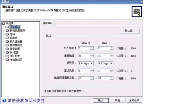 用編程軟件STEP 7 Micro DOS/WIN(測(cè)試時(shí)使用的SP3)來修改通訊參數(shù):