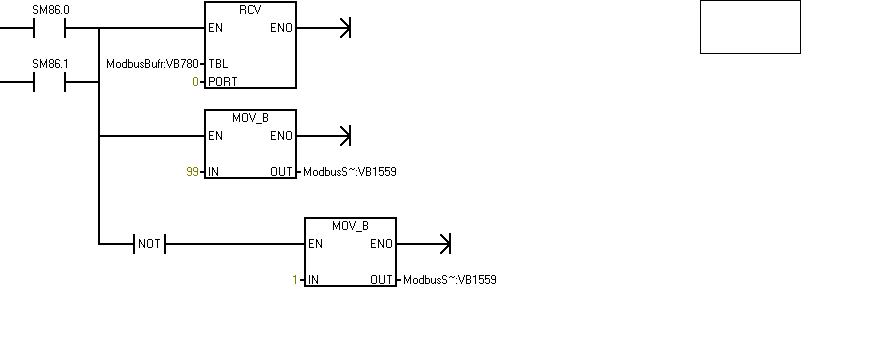 這段程序的意思是當前面二個條件滿足后執(zhí)行自由通訊的接受,同時將vb1599置0。反之置1.