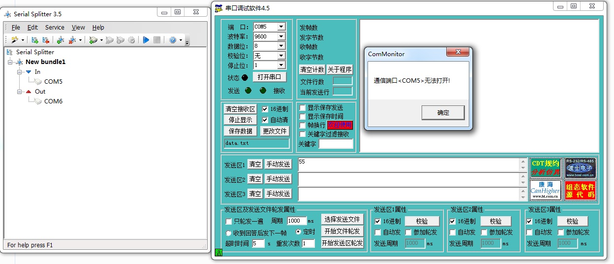 是兩個(gè)軟件加起來(lái)的serial splitter 和串口軟件