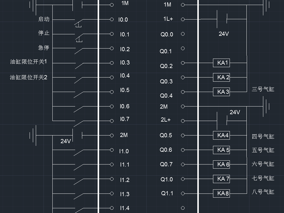 8號(hào)油缸Q1.1推動(dòng)活塞至油缸限位開關(guān)2(I0.4),到位,停止推動(dòng)。