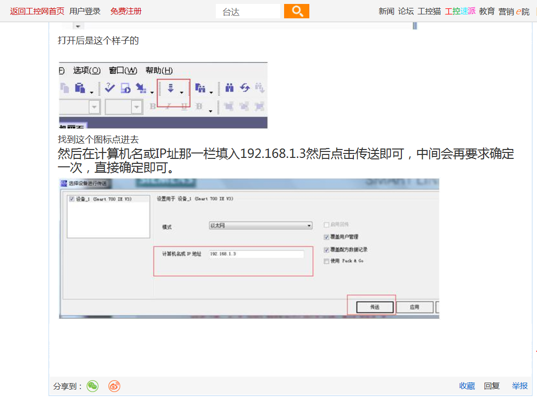 例如,你的觸摸屏IP是192.168.1.3; 你的PC端IP只能是同一個(gè)網(wǎng)段(例如192.168.1.4).但是,坑爹的地方來了:下載程序的時(shí)候,wincc flexible SMART軟件上面的IP只能是192.168.1.3 否則你永遠(yuǎn)連不上。!但是坑爹的是:軟件上面中文寫的是“計(jì)算機(jī)名或IP”,很多人直接輸了PC的192.168.1.4.結(jié)果被坑了。