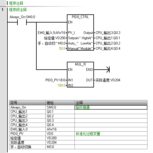 求高手幫忙指點(diǎn)一下,我現(xiàn)在要做一個(gè)溫控加熱的程序,CPU是SMART的ST20,用EM-AR02模塊連接PT100熱電阻測(cè)溫,然后輸出是用Q0.1的DC24V驅(qū)動(dòng)固態(tài)繼電器,通過(guò)改變輸出占空比來(lái)達(dá)到控溫的目的,現(xiàn)在硬件都準(zhǔn)備好了,就是不知道程序應(yīng)該怎么做,