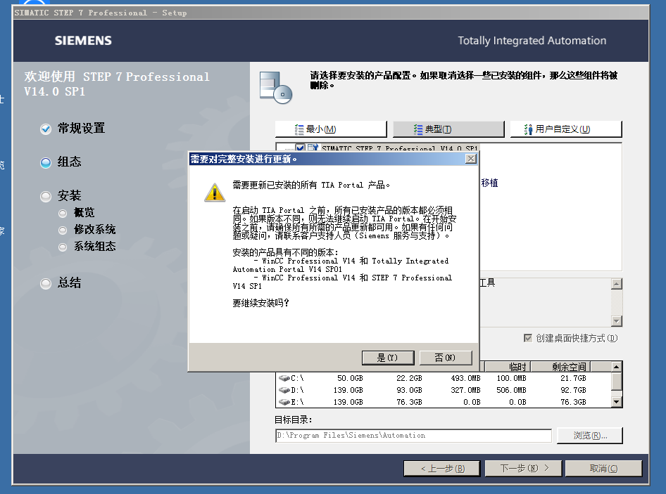 之前裝了博途v14,.后來安裝v14sp1提示兩個版本不一致,