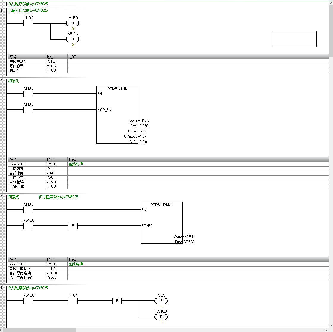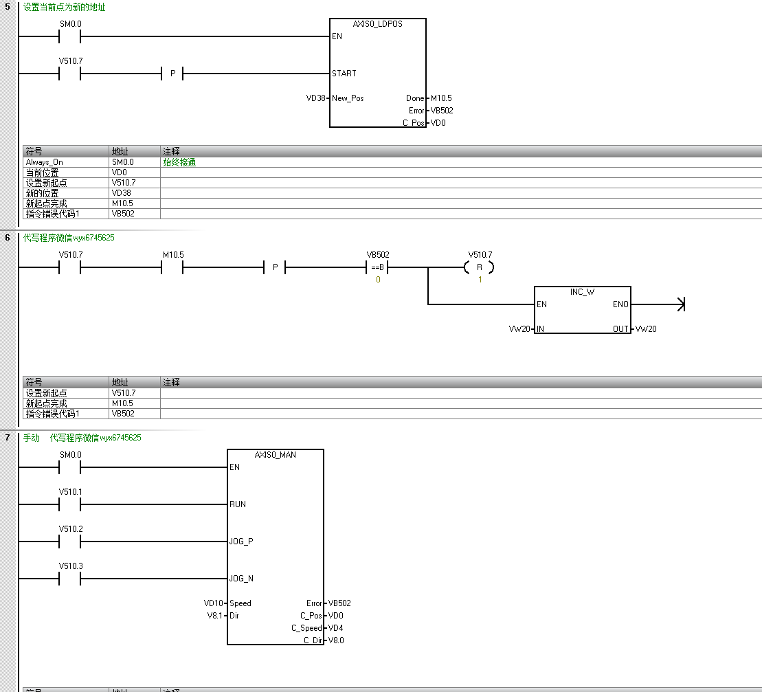 SMART200的回原點(diǎn),手動、點(diǎn)動、3個往復(fù)定位循環(huán)程序,西門子定位系統(tǒng)確實(shí)比三菱、匯川等品牌差勁,且麻煩。以下為標(biāo)準(zhǔn)程序,供菜鳥學(xué)習(xí)。