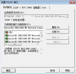 檢查選項(xiàng)---設(shè)置PG/PC接口;在為使用的接口分配參數(shù)中選擇電腦本身的網(wǎng)卡如圖Intel(R) PRO/1---MT Network.TCPIP(網(wǎng)卡不同,如圖顯示的名稱也各不相同) 注意:此處選擇需區(qū)分電腦的有線網(wǎng)卡和無線網(wǎng)卡。