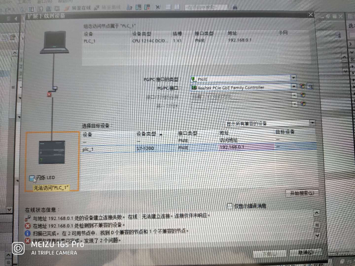 ![]() 博途16能搜索到PLC,無(wú)法下載,這是為什么 |