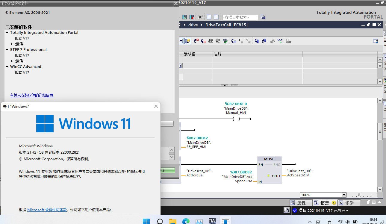 本人前幾天手欠升級(jí)WIN11系統(tǒng),結(jié)果顯然可見,博圖V15 15.1 均無法打開,不知道各位大神有測(cè)試17 什么效果,是否可用。